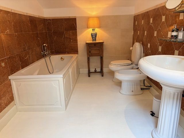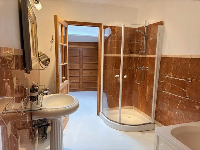 At the other end a separate staircase leads to a further three double bedrooms and a second large bathroom with separate shower, bath and toilet.